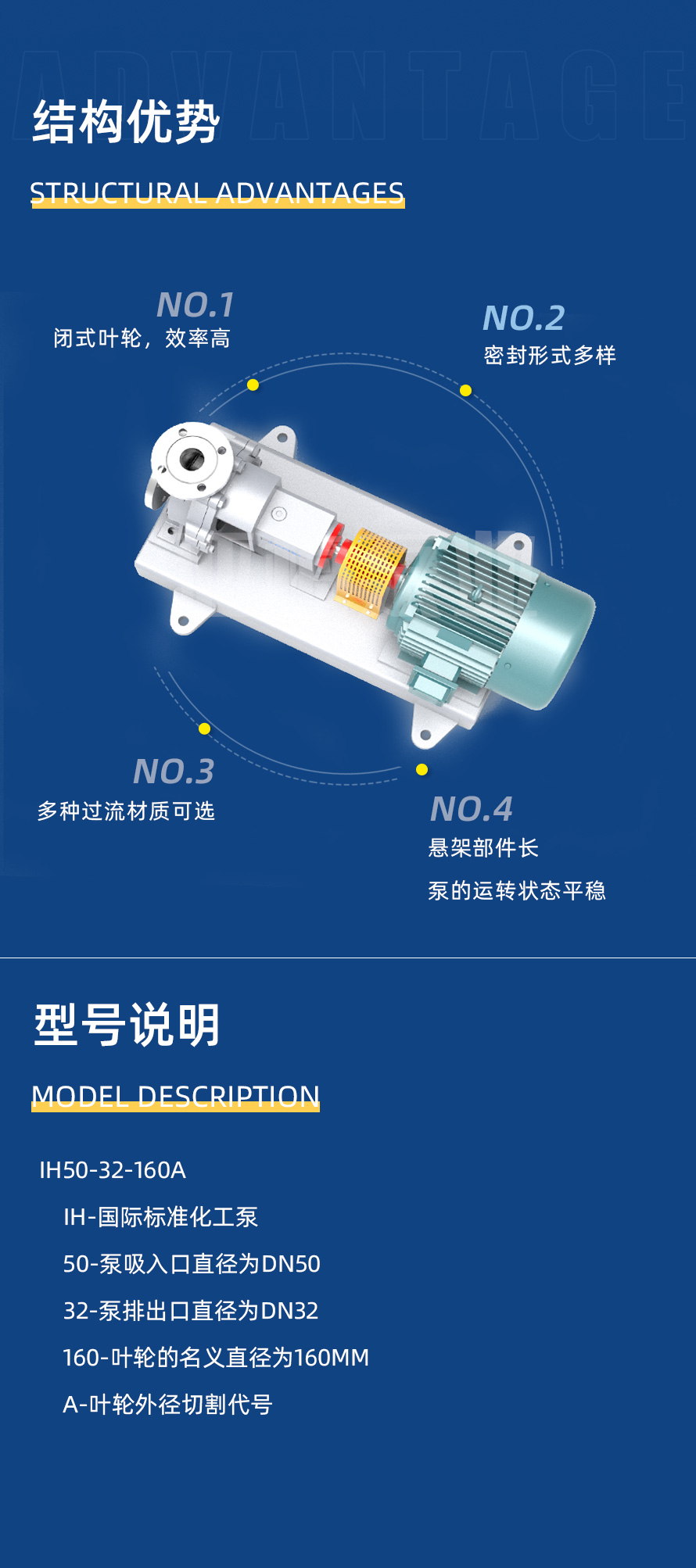IH型單級單吸懸臂式化工離心泵是取代F型耐腐蝕離心泵的節(jié)能、換代產(chǎn)品,該產(chǎn)品廣泛用于化工、石油、冶金、造紙、食品、制藥、合成纖維等工業(yè)部門,用來輸送有腐蝕性、粘度類似于水的液體。