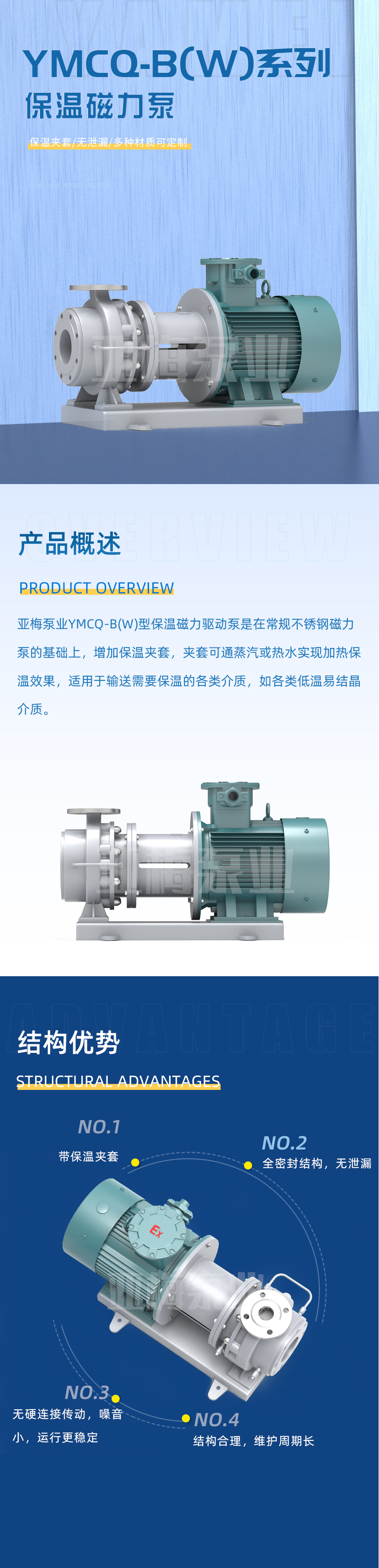 亞梅泵業(yè)YMCQ系列磁力驅(qū)動(dòng)泵是將永磁聯(lián)軸器的工作原理用于離心泵的高科技產(chǎn)品,設(shè)計(jì)合理,工藝先進(jìn),具有全密封,無泄漏,耐腐蝕等特點(diǎn)。